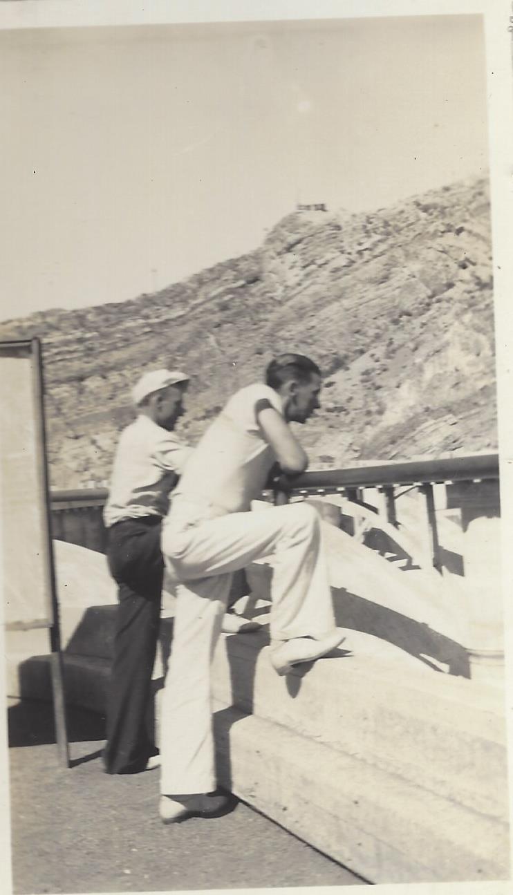 The first pictures in the album from the “trip to nowhere” were taken at Hoover Dam (known as Boulder Dam at the time). These helped me date the trip. Hoover Dam was completed in 1935. In 1936 the water in Lake Mead was high enough to begin electrical generation. It took some time for water to fill Lake Mead. In my Dad’s pictures, the lake is almost full so I am guessing it was a year or two after completion of the dam.