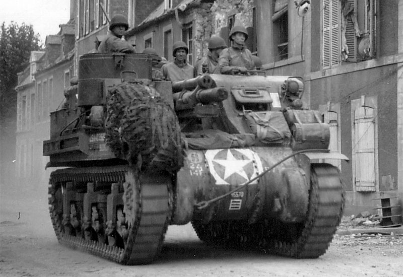 On August 20th the battalion moved to Weymouth, on the south coast, and loaded on LST’s to cross the channel. After landing on Utah Beach in Normandy, the 276th began the motor march across France. By September 10 they reached Joinville, in eastern France near Nancy, where they were assigned to the French Second Armored Division. Here they fired their first combat rounds in the war.