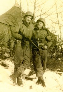 As part of Patton’s Third Army, the 276th journeyed from near Bettviller in easternmost France to the City of Luxembourg in four days, enduring snow, extreme cold, and icy, mountainous roads. This was the famous march in the dead of winter that Third Army made to relieve the US troops surrounded at Bastogne. In Luxembourg the 276th moved further north to engage the enemy along the southern shoulder of the bulge where they spent Christmas of 1944. During this time the weather was extremely cold. They were not allowed to build fires and they had no hot food. My father-in-law said that one night he fell asleep under the gun and when awakened by gunfire he was numb and stiff. Had he not awakened, he would have frozen to death, as many did that winter.