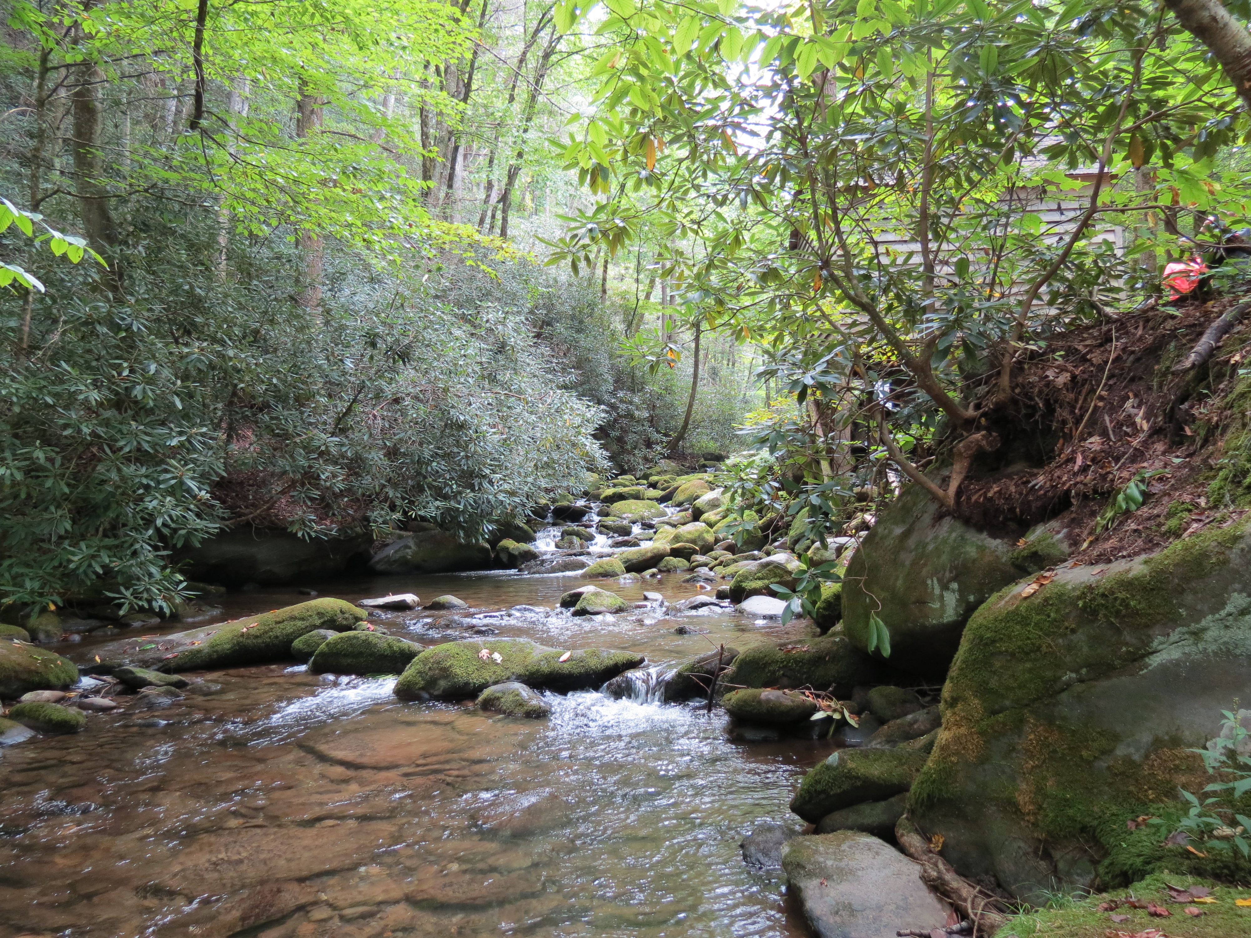 On this visit we found a new-to-us drive through the park. A one-way loop above Gatlinburg that didn’t take too long to drive and provided some history of the area. Just turn at Red Light #8 (Yes, they number the lights to make giving directions easier) and head up Cherokee Orchard Road until it forks. Take the fork on the right. This leads to a one-way drive called the Roaring Fork auto tour.