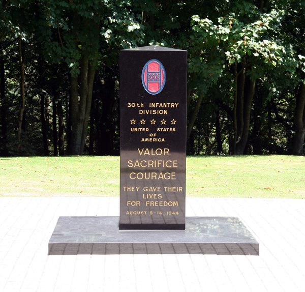 A short distance to the west of the 30th’s position was Avranches and the narrow corridor supplying the Third Army and elements of the First Army pushing further into France. Unknown to the Allies, the Germans were massing forces for a counter-attack. They saw their chance to cut off Patton’s army by attacking west to the coast at Avranches, cutting the American supply lines, and thus bottling up Patton in Brittany and restricting the rest of the Allies to Normandy. The German plan could have worked – if the 30th Infantry Division hadn’t stood in their way, blocking key roads and holding the only high point in the area.
